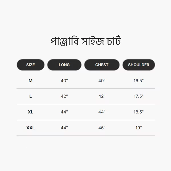 পাঞ্জাবি সাইজ সিলেক্ট করুন *M *L *XL *XXL *